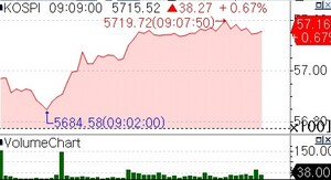 코스피가 사상 처음으로 5,700선을 넘어섰다. 지난밤 미국 증시의 하락에도 불구하고 코스피는 상승세를 이어가며 장 초반 5,715.52까지 치솟았다. 이는 미국이 이란을 공습할 수 있다는 분석 속에 방산 기업들의 주가가 강세를 보인 영향으로 풀이된다. ## 지정학적 리스크와 방산주의 상관관계 🚀