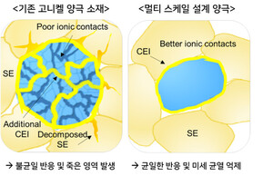 국립부경대 신소재시스템공학과 김남형 교수 연구팀과 한국에너지기술연구원 차형연 박사 연구팀은 입자 내부와 외부의 나노 및 마이크로 구조를 동시에 설계하는 ‘멀티 스케일 구조 설계 전략’을 통해 전고체전지용 고니켈 양극의 성능과 수명을 동시에 확보하는 기술을 개발하였다고 밝혔습니다. 전고체전지는 전기차와 에너지 저장장치에서 점차 중요한 역할을 담당하고 있으며, 안전성과 장기 사용성을 위해 고니켈 양극의 안정화가 중요한 이슈로 떠올랐습니다.