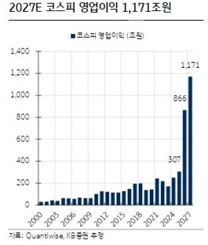 가계 자금이 주식시장으로 대규모 이동하는 ‘머니무브’가 지속되면서, 삼성전자와 SK하이닉스1,136,000원 ▲+2.99% 등 반도체 강세가 코스피를 7,500선에 가깝게 끌어올릴 것이라는 분석이 나오고 있습니다. KB증권 연구원들은 올해 코스피 영업이익이 전년 대비 182% 급증해 866조 원에 달할 것으로 예상하며, 이는 사상 최대 규모입니다. 특히 삼성전자와 SK하이닉스가 전체 영업이익의 68%를 차지할 것으로 보여, 이 두 기업의 실적 호조가 시장 전체에 큰 영향을 미칠 것으로 보입니다.